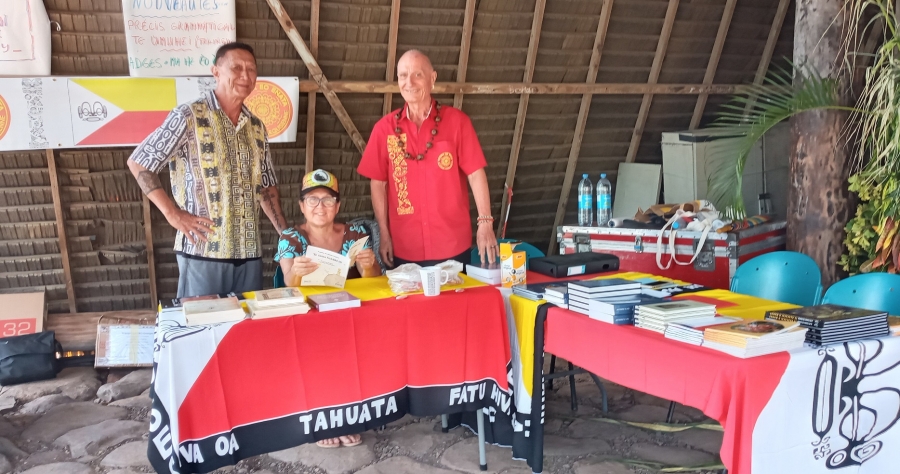Trois membres de l’Académie dans leur stand au 1er jour du Matavaa