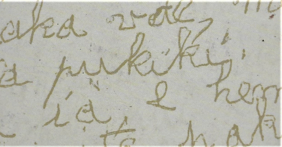 Dès son arrivée, il note ses impressions de séjour et décrit la langue marquisienne qu’il apprend. Voici la page 191 de son recueil de lettres (note 8) :