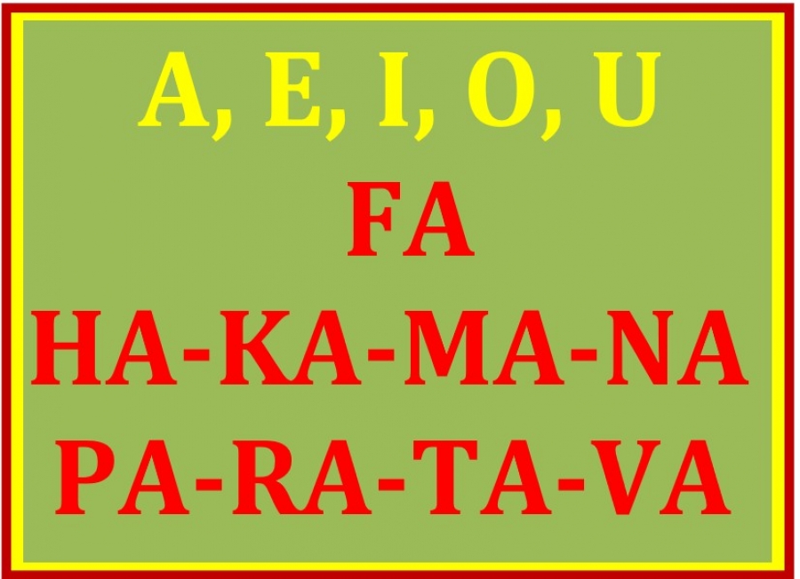*- Les consonnes : elles sont combinées à la voyelle « A » : FA-HA-KA-MA-NA-PA-RA-TA-VA (NGA ; « ng » utilisé autrefois.)